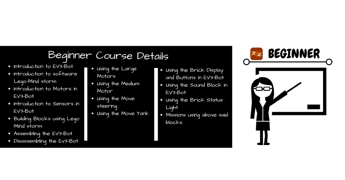 The Robotics for Beginner program is suited for those who are looking to learn EV-3 programming and Learn how to make your robot move straight, turn, repeat actions, choose between actions and follow lines.